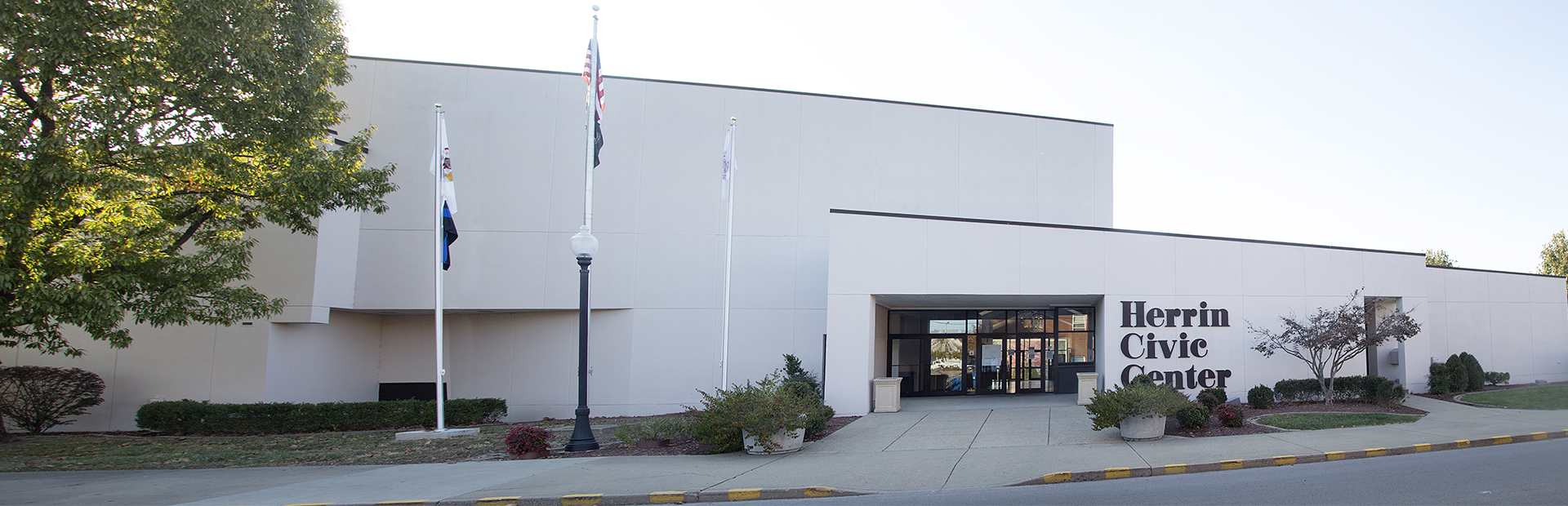 The Herrin Civic Center is conveniently located in downtown Herrin, at 101 South 16th, one (1) block directly behind the Bank of Herrin.